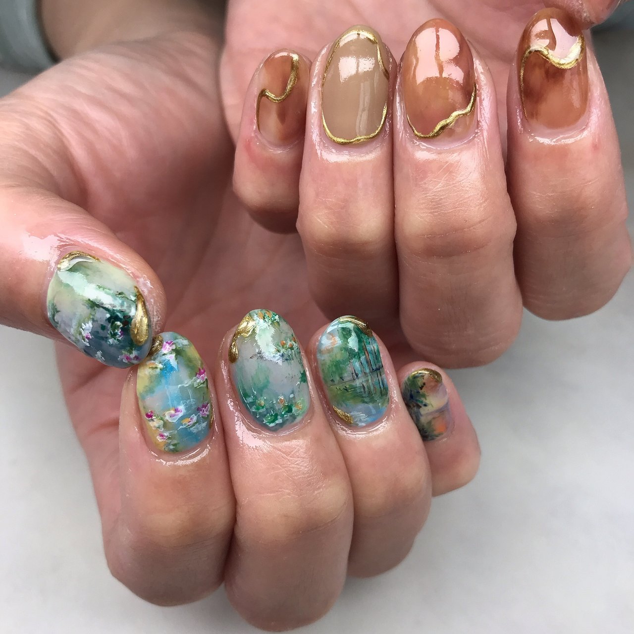 risa oomori på Instagram: "#モネの池 #絵画 #art #nail #nailart #nails #ネイル #ネイルアート #油絵ネイル #kanazawa #金沢#toyama #手描きアート #手描… | ネイル, 油絵, ジェルネイル