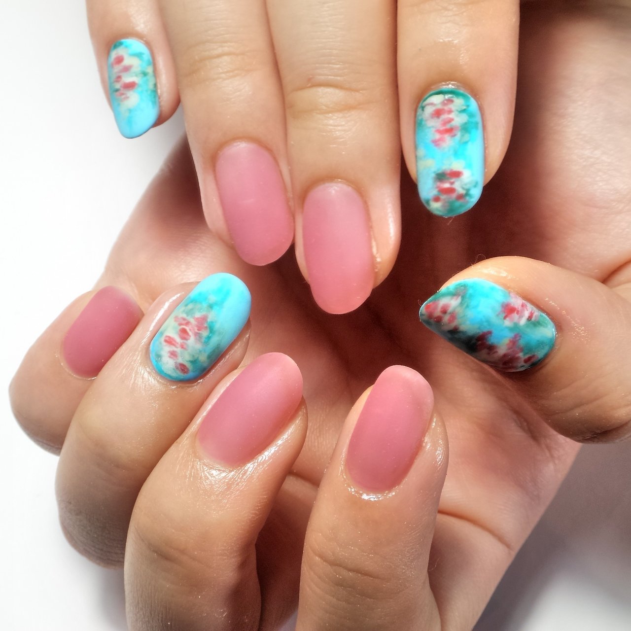 手描き絵画アートネイル 画家モネ「睡蓮」| 爪に優しいネイル 東京・代官山 恵比寿 | 代官山ネイルサロン アセトンを使わない 爪に優しい高技術フィルインサロン Milagro(ミラグロ)