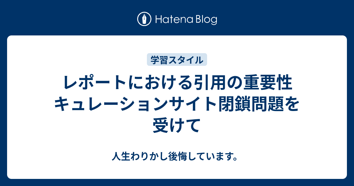 レポートにおける引用の重要性 キュレーションサイト閉鎖問題を受けて - 人生わりかし後悔しています。